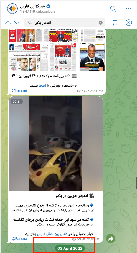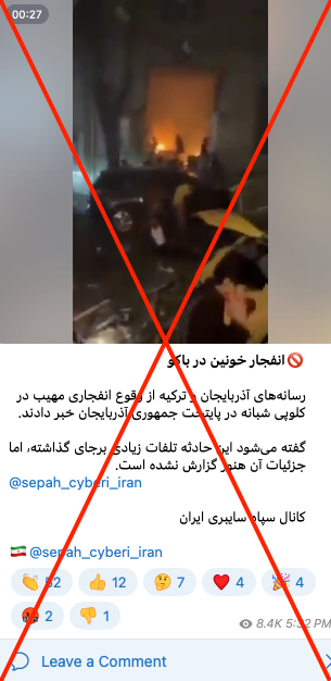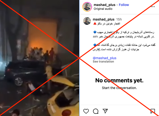 فکتنامه نیز به این ادعا که در این روزها انفجاری مهیب در باکو اتفاق افتاده نشان «نادرست» میدهد زیرا خبر و تصاویری که همراه آن منتشر شده مربوط به سال ۱۴۰۱ است.