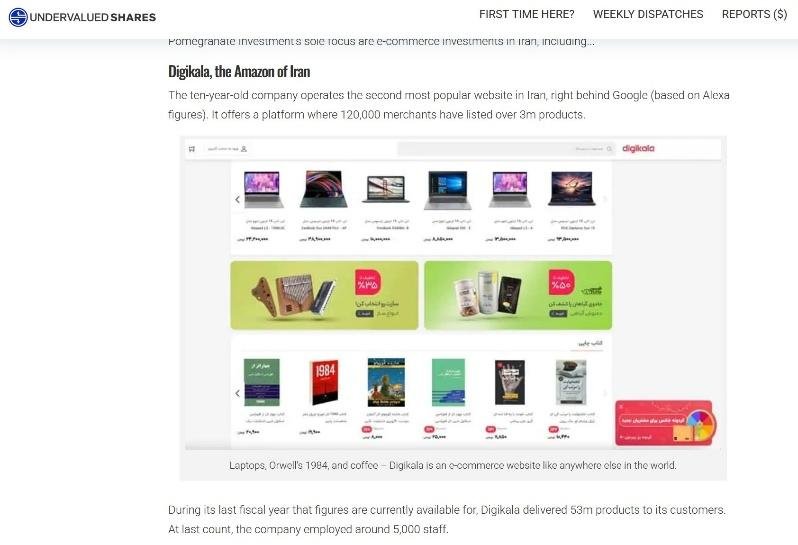 در مطالب مذکور، همچنین سرمایهگذاری در ایران با «خرید سهام آمازون در روزهای نخست» مقایسه شده. بررسیها نشان میدهد چنین ادعایی هرگز از سوی افراد نامبرده مطرح نشده است. این تشبیه نخستینبار در یادداشتهای تحلیلی یک وبسایت اقتصادی به نام Undervalued Shares درباره دیجیکالا و بازار نوظهور ایران به کار رفته بود و صرفاً یک مطلب تحلیلی بود و از طرف هیچ چهره سیاسی یا اقتصادی مطرح نشده است.
