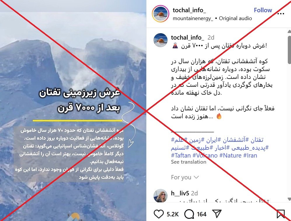 ادعایی در شبکههای اجتماعی مبنی بر فعال شدن مجدد آتشفشان تفتان منتشر شده است. ( لینک۱ ، لینک۲ ، لینک۳ )