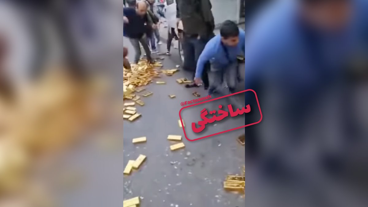 برخی از حسابهای کاربری در شبکههای اجتماعی ویدیویی را با عنوان «واژگونی ماشین حمل شمش طلا در تهران» منتشر کردهاند. در ویدیو به نظر میرسد در یکی از خیابانهای تهران، تعدادی شمش طلا از یک ماشین حملونقل به خیابان ریخته است و مردم در حال برداشتن این شمشها هستند. (لینک ۱، لینک ۲، لینک ۳)