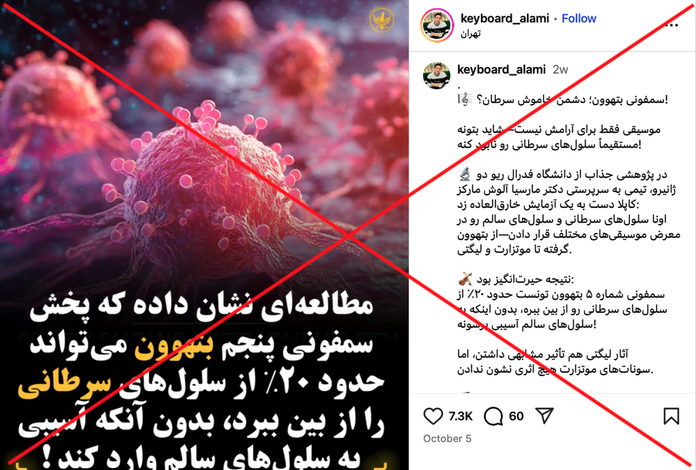در شبکههای اجتماعی ادعا شده «سمفونی بتهوون؛ دشمن سرطان» در این پست در اینستاگرام آمده (بایگانی):