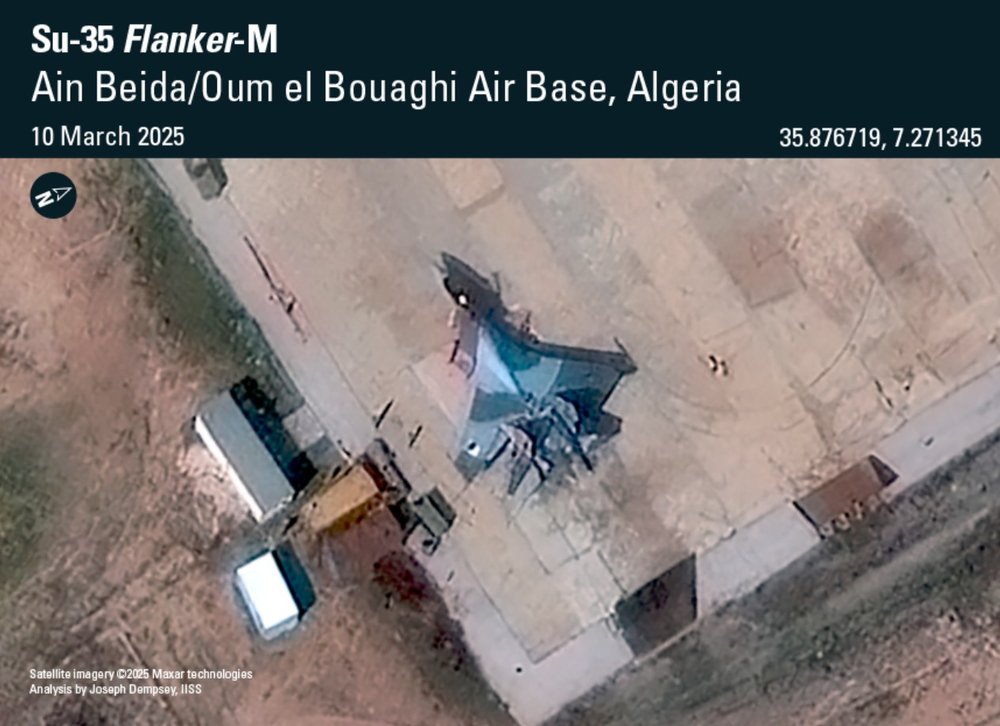 از سویی دیگر، در گزارشی از موسسه بینالمللی مطالعات استراتژیک آمده است که جنگندههای سوخو-۳۵ که پیشتر برای مصر ساخته شده بودند، برخلاف انتظار، به الجزایر تحویل داده شدهاند. تصاویر ماهوارهای تجاری دستکم یک فروند سوخو-۳۵ با نشان نیروی هوایی الجزایر را در پایگاه عینالبیضا تایید میکند. این گزارش میافزاید که خبر تحویل دو فروند سوخو-۳۵ به ایران در نوامبر ۲۰۲۴ نیز وجود دارد، اما هیچ سند یا تصویر منبعباز (Open Source Imagery) برای تایید آن منتشر نشده است.