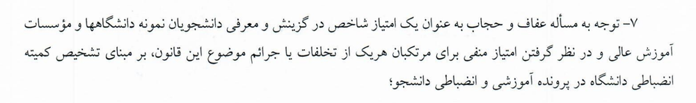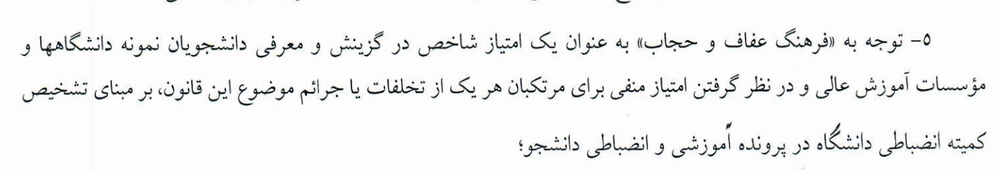 متولدین دهه ۸۰ در سنین ورود به دانشگاه قرار دارند. در این قانون در رقابت برای ورود به موسسات آموزش عالی، حجاب به عنوان یک امتیاز در گزینش و معرفی دانشجویان ذکر شده و رعایت نکردن آن امتیاز منفی است.