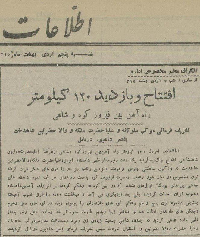 در این گزارش کوتاه «شاهکارهای صنعتی، پلهای بزرگ، تونلهای متعدد که در بین کوهها و شکمکوهها» ایجاده شده نتیجهی «اراده آهنین شاهنشاه محبوب ایران» خوانده شده و اسمی از مهندس اتریشی یا مصاحبه با وی نیست.