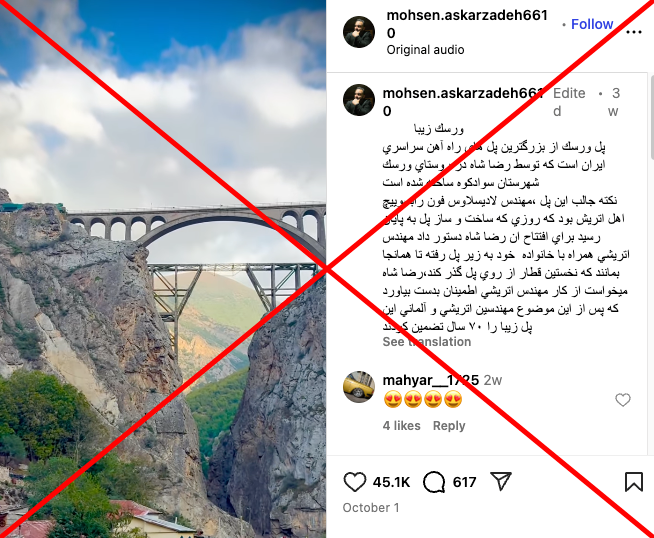 این ادعا که سالهاست در شبکههای اجتماعی بازنشر میشود یک «سرمهندس اتریشی» را مسئول ساخت پل ورسک معرفی کرده است.