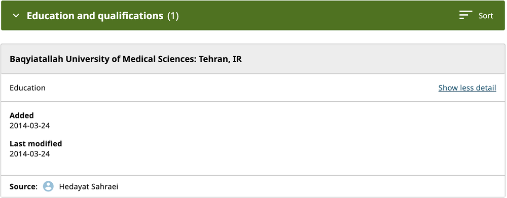 در حالی که در همین مقاله برای سایر همکاران سابقه تحصیلی با جزئیات ذکر شده است.