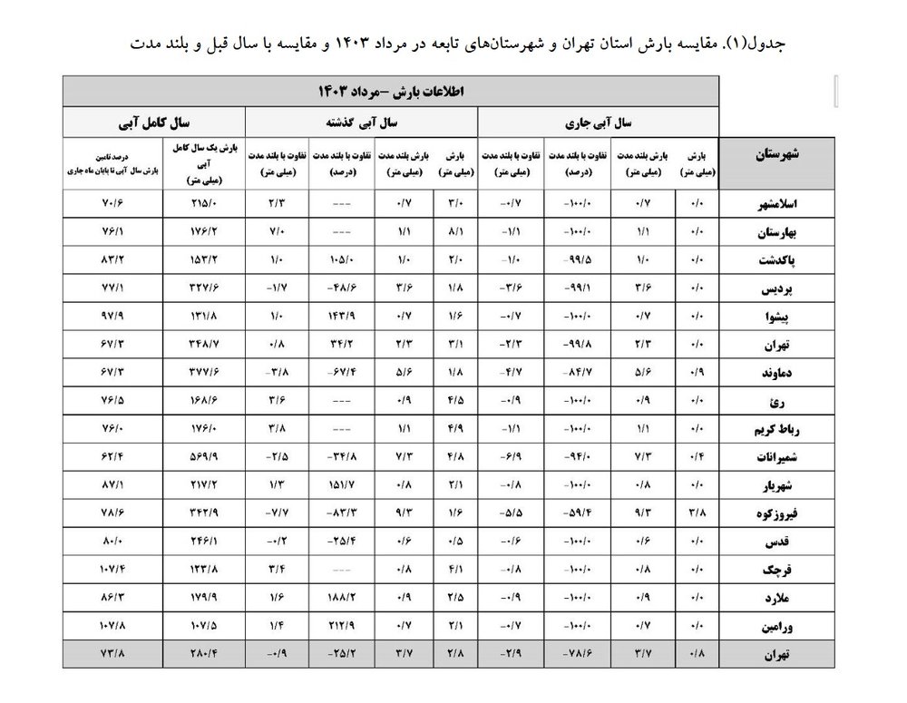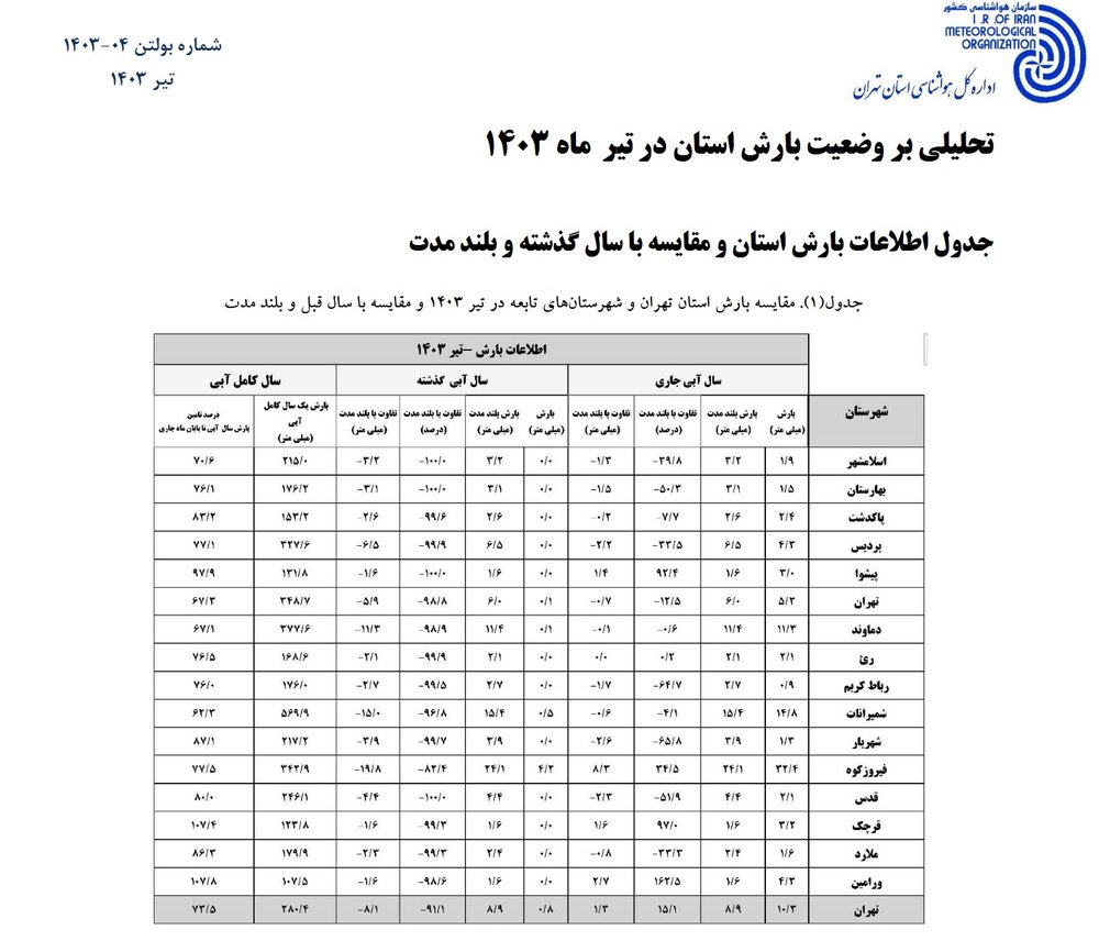 اگر منظور مصطفی خوشچشم از وسط تابستان باشد، مرداد ۱۴۰۳ با میزان بارش ۰.۸ میلیمتر در کل استان و کاهش ۲.۹ میلیمتر از کمبارشترین ماههای استان تهران بوده است.