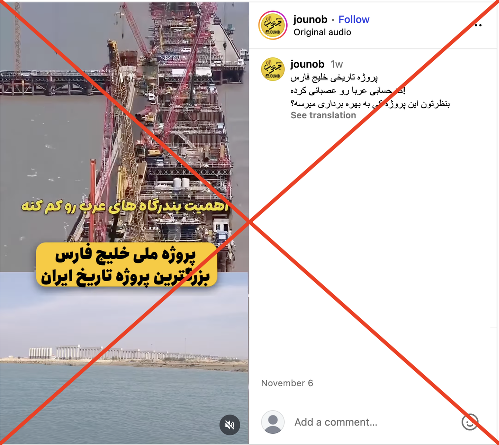 ادعایی در شبکههای اجتماعی منتشر شده که میگوید پروژه پل خلیج فارس به دلیل مخالفت کشورهای عربی منطقه مختل و متوقف شده است.