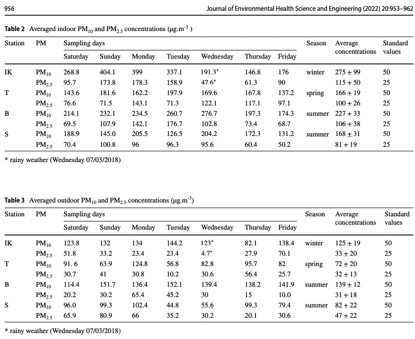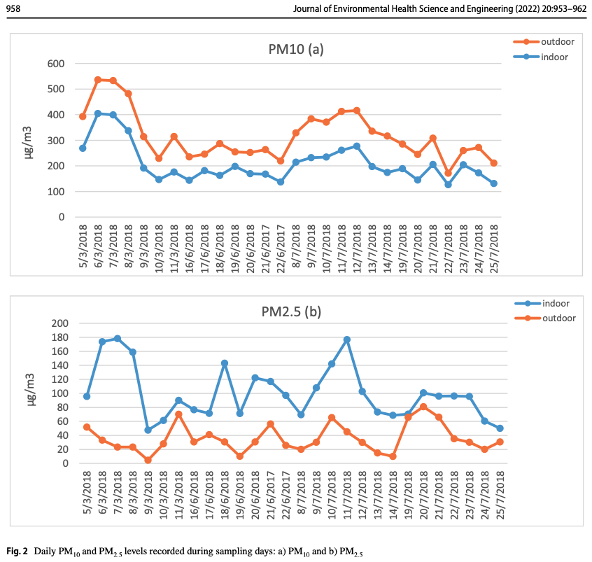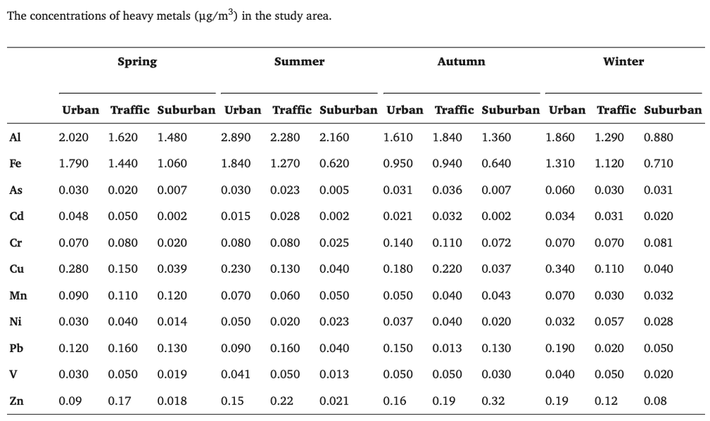 اهمیت حضور آهن در ذرات معلق زمانی بیشتر روشن میشود که دادههای مربوط به محیطهای بسته و پر ارتعاش شهری، مانند متروی تهران، را نیز در نظر بگیریم. در یک مطالعه مستقل که روی هوای سکوهای مترو تهران انجام شده، مشخص شده که آهن در هر دو دسته ذرات معلق، نسبت به محیط بیرون با غلظت بسیار بالاتری حضور دارد که به خاطر سایش شدید چرخها و ریل، قطعات ترمز، و دیگر اجزای فلزی که در محیط نیمهمحصور مترو مداوما تولید ذرات آهن میکنند و امکان پراکندگی آزادانه آنها کمتر است.