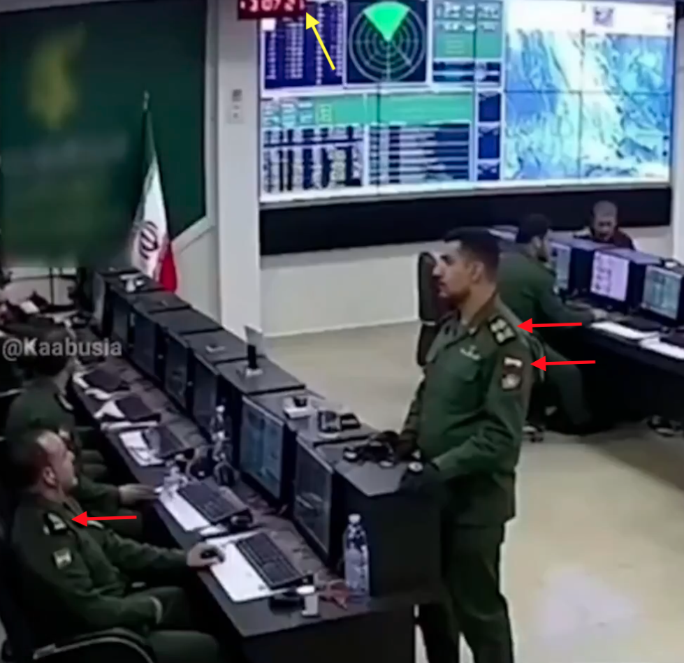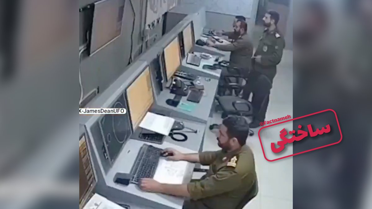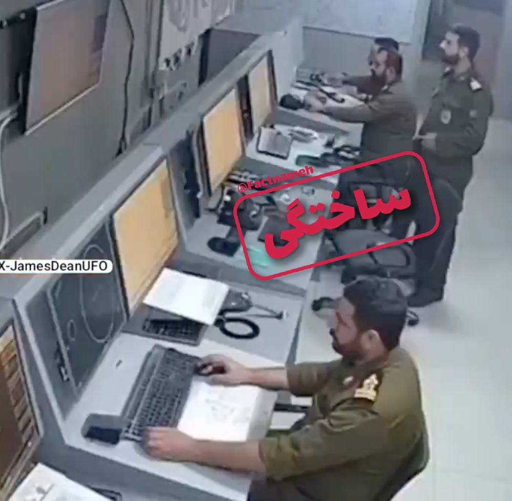 ویدیو چهارم نیز ساخته هوش مصنوعی است. سردوشیها اشتباه است، ردیف آخر، جلوی دو اپراتور پدافند، مانیتور وجود ندارد، تجهیزات اداری مانند صندلی و ماوس و هدفون حالتی غیرعادی دارند (بایگانی).