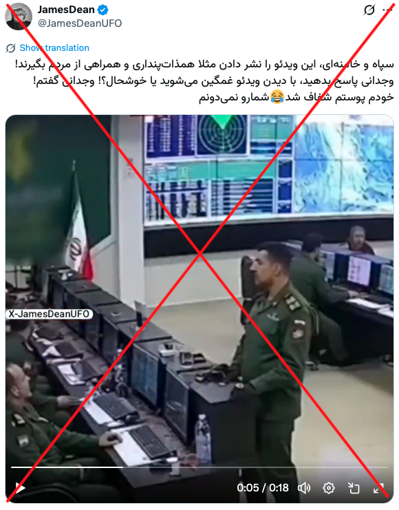 ادعای این کاربر درباره اینکه «سپاه و خامنهای» (رسانههای نزدیک به آنها) این ویدیو را منتشر کردهاند نادرست است و هیچ مرجع رسمی این ویدیو را منتشر نکردهاست (بایگانی).