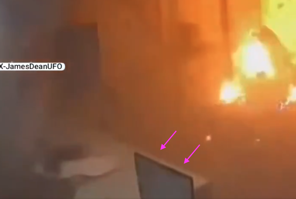 به محض ورود افرادی به داخل اتاق فرمان انفجاری از سمت در واقع میشود که به نظر میرسد ممکن است تصویری واقعی باشد که به این پس زمینه ساختگی (احتمالا با هوش مصنوعی) اضافه شدهاست. پس از انفجار، همچنان نمایشگرهایی را می بینیم که بدون کمترین آسیب در جای خود قرار دارند و حتی روشن هستند و پس از فروریزش آوار، یکی از آنها به طرز غیر عادی سقوط میکند.
