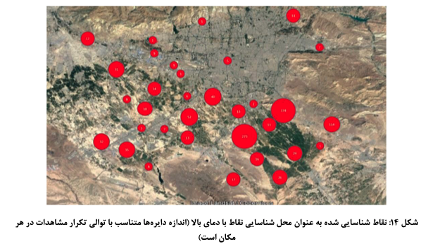 همچنین، تصاویر ماهوارهای وجود ناهنجاریهای حرارتی متعدد و پرتکرار (نقاط داغ) را در غرب و جنوبغرب تهران تایید میکنند که نشاندهنده فعالیتهایی مانند سوزاندن پسماند هستند و سهم قابل توجهی در آلودگی هوا دارند.