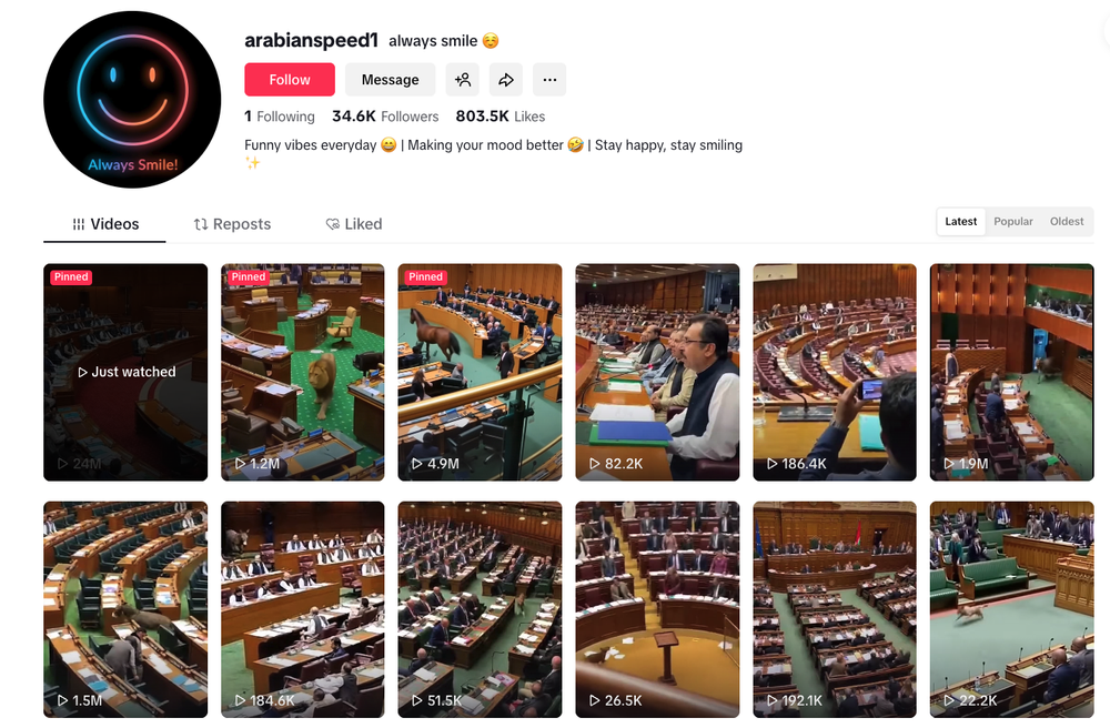 این حساب کاربری تصاویر مشابه دیگری از همین صحنه با زوایای دیگر دارد. علاوه بر این ویدئوهایی از حضور حیوانات دیگر مانند اسب، خرس، شیر و شترمرغ در فضای پارلمان ساخته و منتشر کرده است.