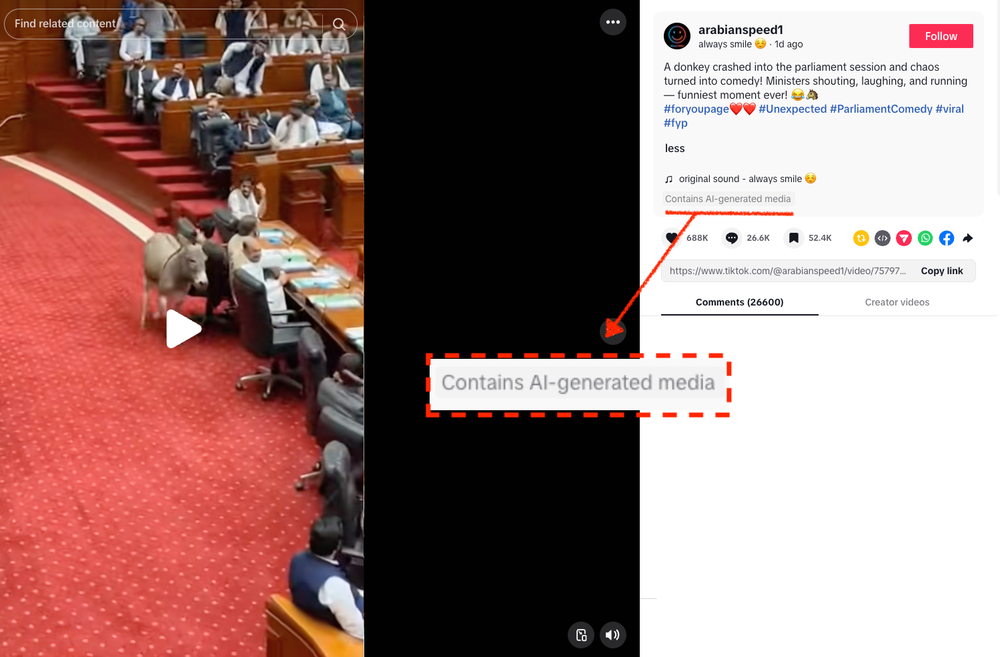 بررسیهای فکتنامه هم نشان میدهد این ویدئو را اولین بار یک حساب کاربری طنز در تیکتاک منتشر (لینک بایگانی) کرده است. در نسخه اصلی این ویدئو به وضوح نوشته شده که محتوا برساخته هوش مصنوعی است.