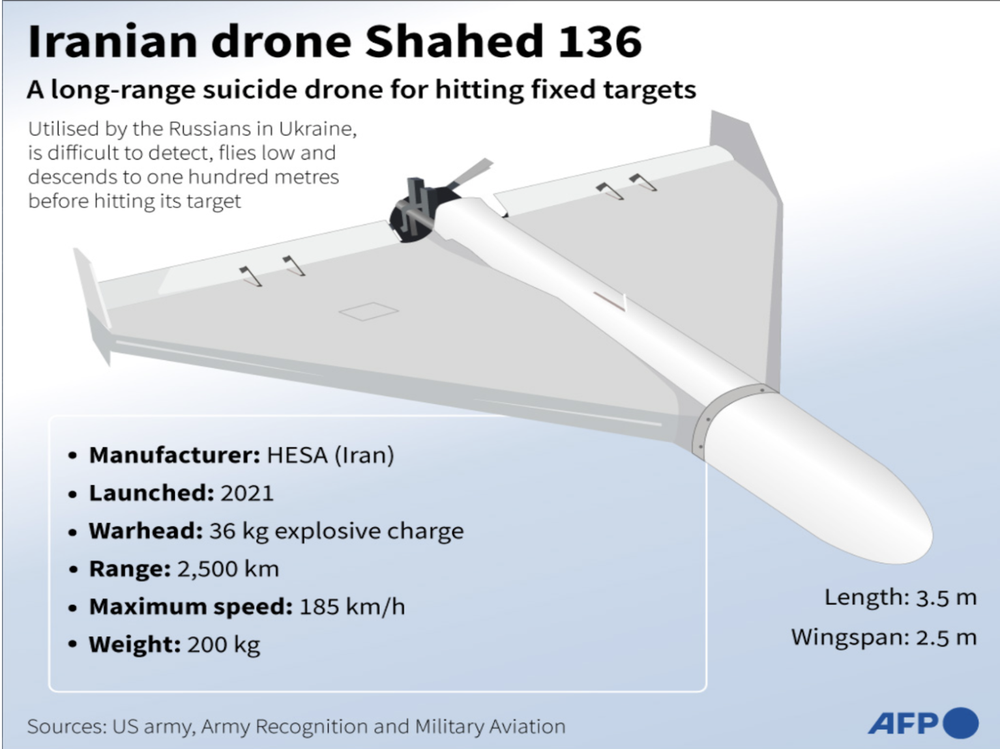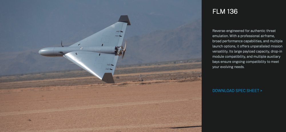 شاهد-۱۳۶ (محصول صنایع هوافضای سپاه پاسداران انقلاب اسلامی) یک مهمات پرسهزن یا پهپاد انتحاری برد بلند است که برای حمله یکطرفه با هزینه کم طراحی شده و عملکردی شبیه موشک کروز دارد در حالی که بسیار ارزانقیمتتر است. این پهپاد طرح بال دلتا یا مثلثی (Tailless Delta) دارد.