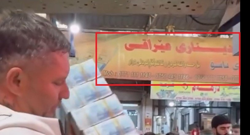 با توجه به تابلوهای قابل مشاهده در ویدیو، نام یک صرافی به نام «نووسینگهی ئاسو، کومپانیای دیناری عیراقی» مشهود است. شماره تلفنهای روی تابلوها ما رو به صفحه فیسبوک این صرافی رساند که از صرافیهای بزرگ و شناخته شده در اربیل کردستان و در جایی موسوم به «بازار دلار» است.