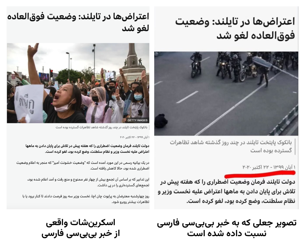 در این بین، برخی کاربران هم با جعل تصاویری منتسب به خبرهای اعتراضات ۲۰۲۰ تایلند، مدعیاند که دقیقا همین عکس در خبرهای آن سالها استفاده شده بود؛ ادعایی که جعلی و شاخدار است.