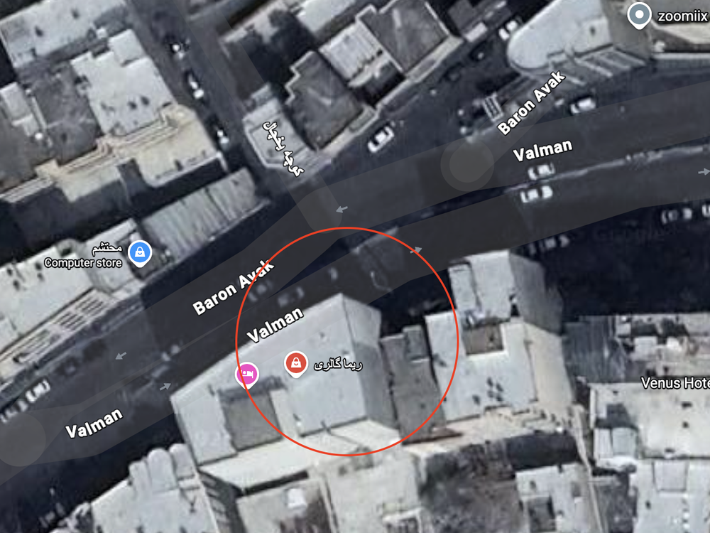 در ویدیو، تابلوی «گالری ریما» دیده میشود؛ فروشگاهی که میتوان نشانی آن را در خیابان بارون آواک روی نقشه گوگل پیدا کرد. نقشه خیابان، منطبق با جرئیاتی است که در ویدیو مشاهده میکنیم.