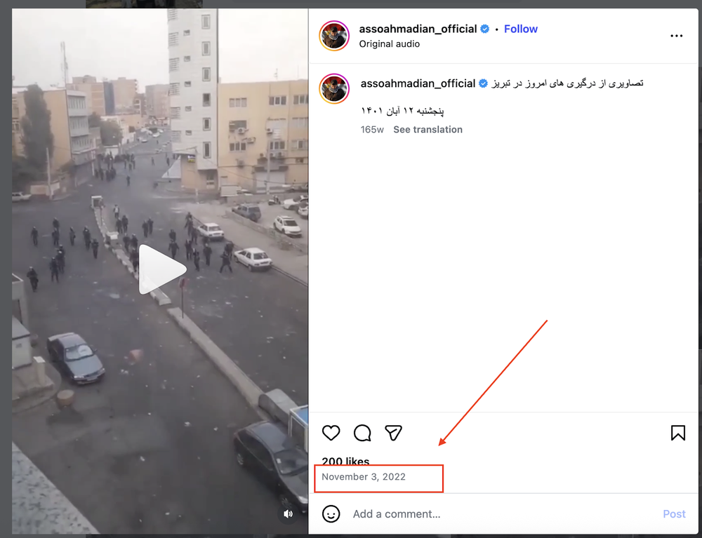 نسخه اصلی ویدیو ۱۲ آبان ۱۴۰۱ با عنوان «ویدیوی مربوط به درگیریهای تبریز» در شبکههای اجتماعی مثل اینستاگرام منتشر شده است.
