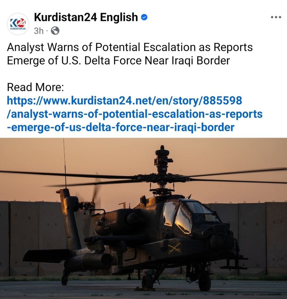علاوه بر رسانههای داخل ایران، شبکه «کردستان۲۴» در اقلیم کردستان روز ۱۶ دی ماه گزارشی منتشر کرد که ادعا میکرد نیروهای دلتا فورس ایالات متحده در پایگاه التحریر به نزدیکی اربیل منتقل شدهاند. این گزارش که در عنوان آن اشاره شده بود «تحلیل» یک کارشناس سیاسی و نظامی است، پس از مدتی از سایت و شبکههای اجتماعی کردستان ۲۴ حذف شد.