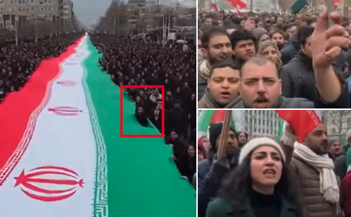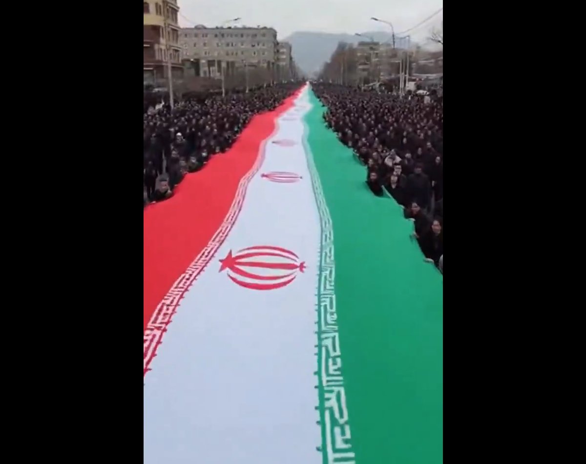 ویدئوی راهپیمایی هواداران جمهوری اسلامی با پرچم غولپیکر