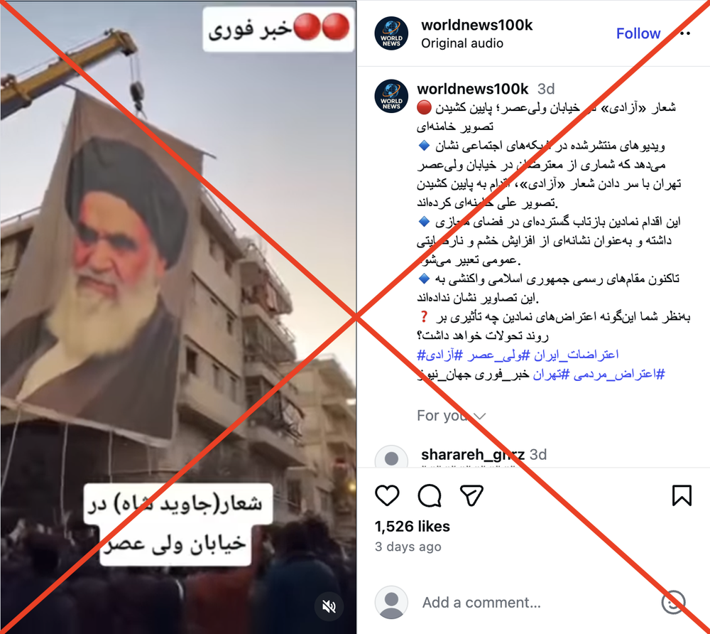 از این رو فکتنامه به این مجموعه ویدیوهایی که با ادعای پوشش اعتراضات ایران ساخته شدهاند نشان «نادرست» میدهد.
