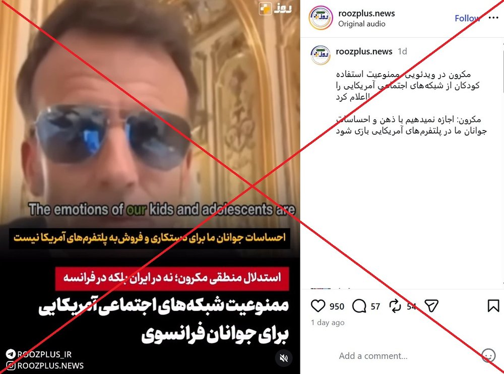 ادعایی در شبکههای اجتماعی فارسی منتشر شده که میگوید امانوئل مکرون رئیس جمهور فرانسه استفاده از پلتفرمهای آمریکایی را در این کشور برای جوانان ممنوع کرده است. (لینک۱ ، لینک۲ ، لینک۳ ، لینک۴)