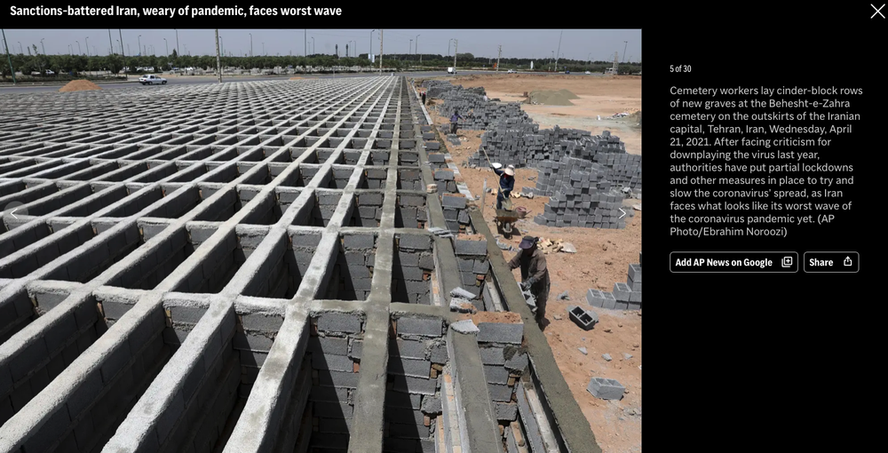تهرانتایمز در بازنشر این خبر از تصویری استفاده کرد که در آن افرادی دارند روی ساخت یک مجموعه قبر کار میکنند که بسیار شبیه قبرستان بهشت زهرای تهران است.