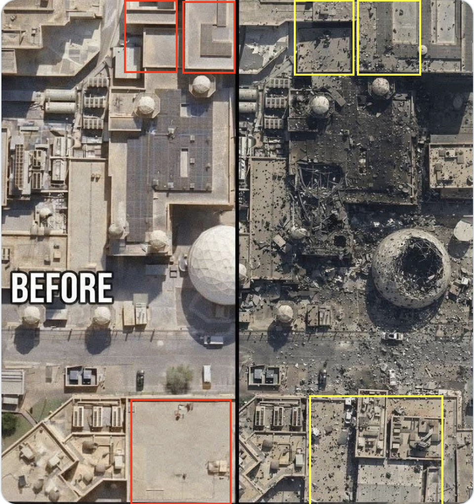 صبح امروز یک پهپاد ایرانی، یک سایت رادار دفاع هوایی و موشکی که ناوگان پنجم آمریکا در بحرین را تخریب کرد. این رادار همان راداری است که در برخی خبرها به پایگاه العدید قطر نسبت داده شده بود.