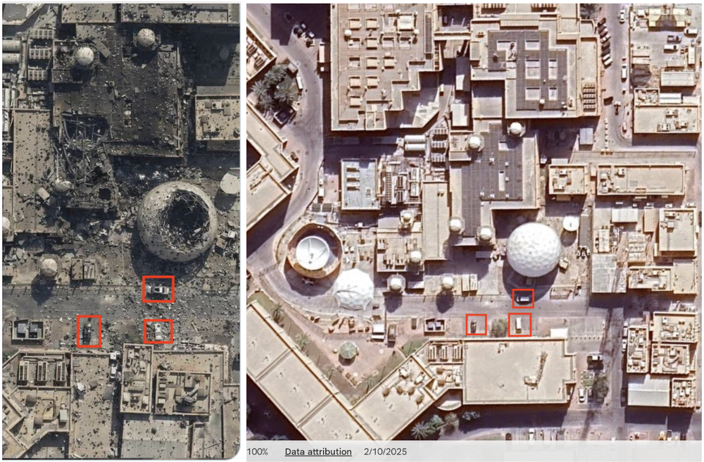 در برخی از توییتها تصویر به پایگاه هوایی العدید (Al Udeid Air Base) قطر، یکی از بزرگترین پایگاههای نظامی ایالات متحده در خاورمیانه نسبت داده شده است.