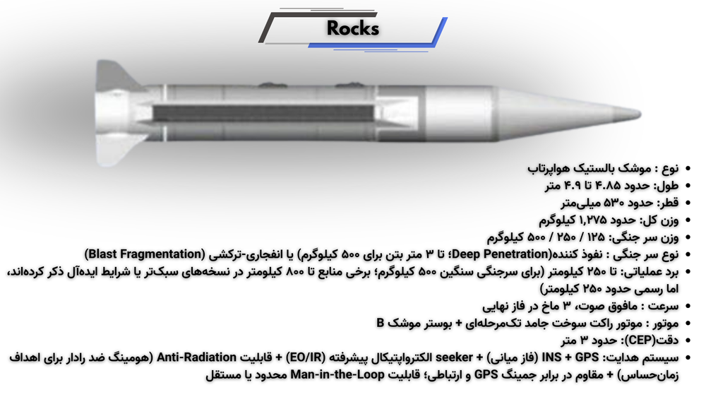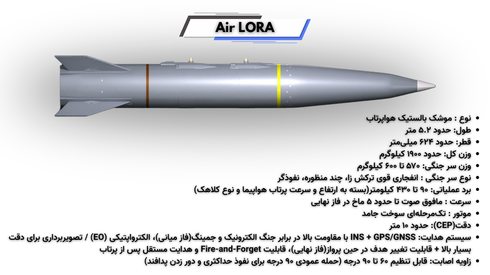 بر اساس اطلاعات موجود دستکم در نسخههای Air LORA و Rocks و سری Sparrow سرجنگی نفوذکننده (سنگرشکن) وجود دارد و بر اساس تصاویری که در ساعات اولیه حمله از عراق منتشر شده بود، بوسترهای موشک بالستیک هوا پرتاب توسط مردم محلی نیز کشف شده بود که این موضوع می تواند مدرک استفاده از این موشکها در این عملیات بوده باشد.