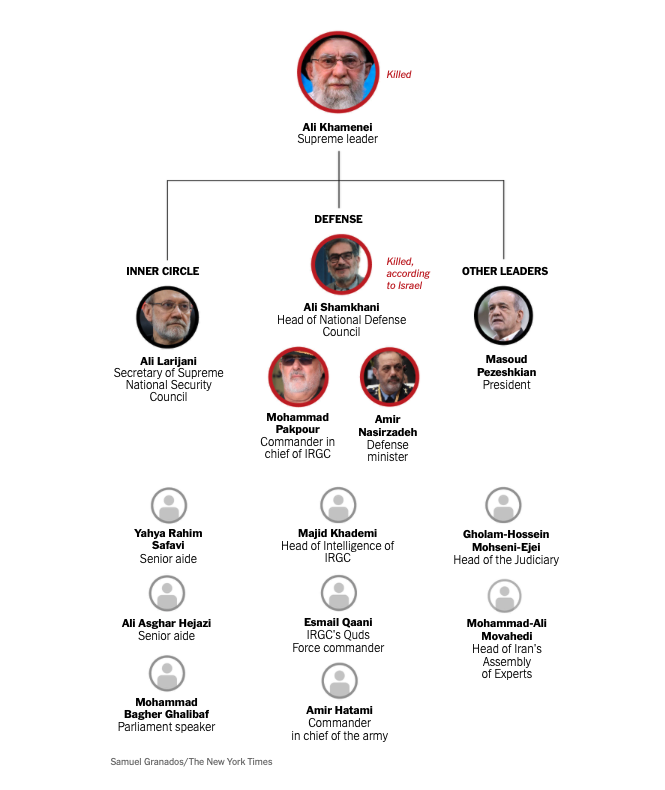 صبح روز شنبه ۹ اسفند ۱۴۰۴ (برابر با ۲۸ فوریه ۲۰۲۶)، در نخستین ساعات آغاز عملیات نظامی مشترک ایالات متحده و اسرائیل، سید علی خامنهای، رهبر جمهوری اسلامی، در بمباران هوایی دفتر رهبری جمهوری اسلامی ایران مشهور به بیت رهبری واقع در محله پاستور تهران کشته شد.