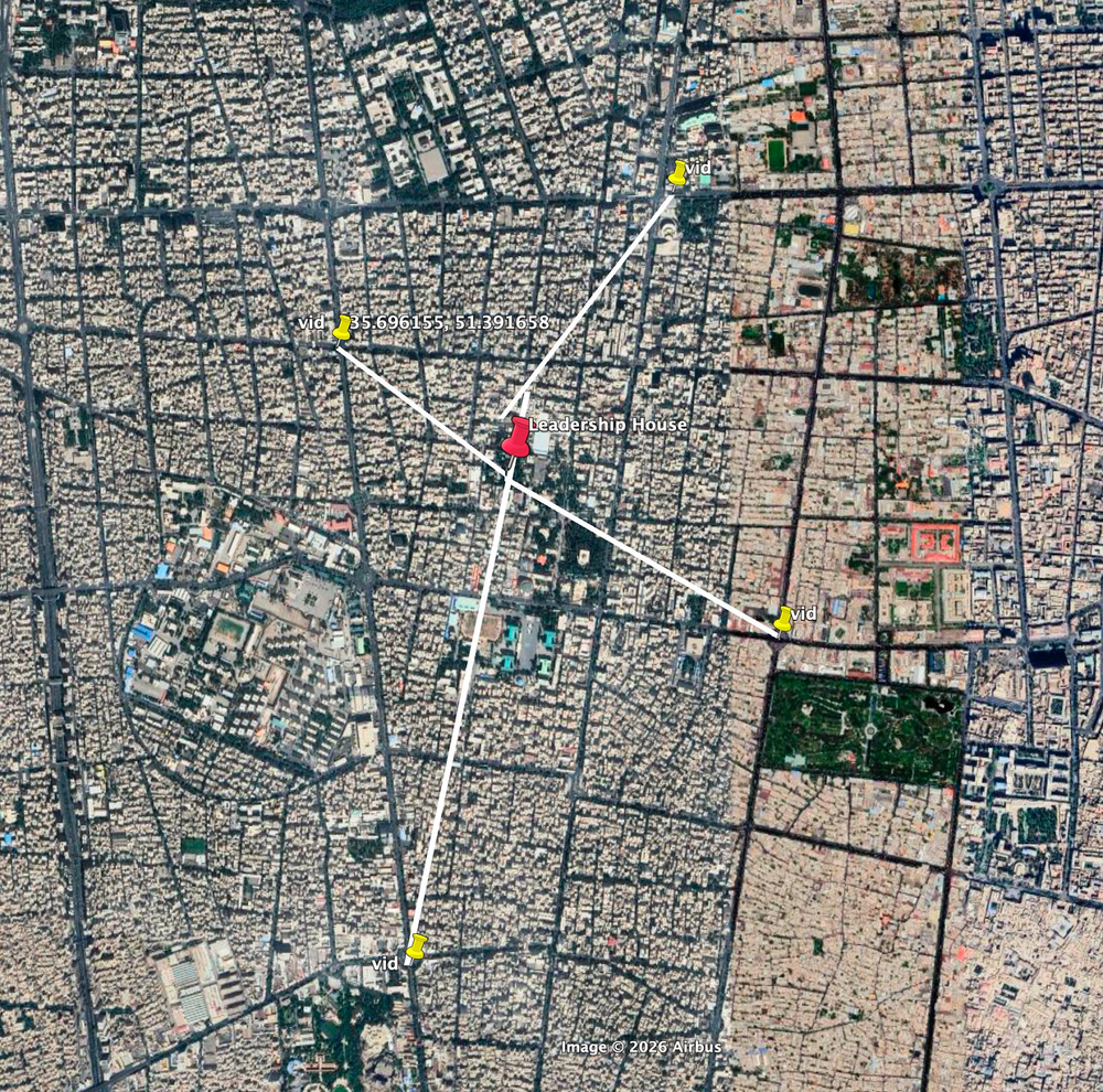 تصاویر ماهوارهای تجاری ثبتشده در ساعات پس از حمله، نشان داد که ساختمانهای اصلی در مجموعه بیت رهبری دچار تخریب متمرکز شده است. الگوی آسیب، شامل فروریزش بخش مرکزی سازه و تمرکز تخریب در یک نقطه مشخص، حاکی از اصابت مستقیم یک پرتابه دقیق است، نه آسیب گسترده ناشی از موج انفجار جانبی.
