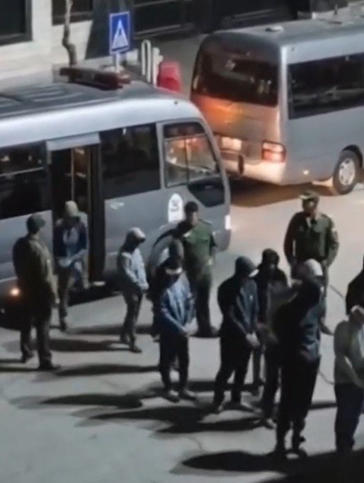 در این ویدیو دو مینیبوس میبینیم که شباهتی با مدلهای موجود و مورد استفاده در ایران ندارد. پشت سر افرادی که ادعا شده زندانی هستند، یک بنر وجود دارد که نوشته روی آن بیمعنی است. تابلوی سمت راست نیز علاوه بر متن نامفهوم، حاوی یک نشان است که شباهتی به نشان هیچ کدام از نهادهای نظامی، انتظامی، قضایی و امنیتی ایران ندارد. علاوه بر اینها فرم حرکت افراد عادی نیست و با وجود چند بار زوم، چهره هیچ انسانی در ویدیو مشخص نیست. یک تابلوی راهنمایی بیمعنا هم در بین دو مینیبوس دیده میشود.