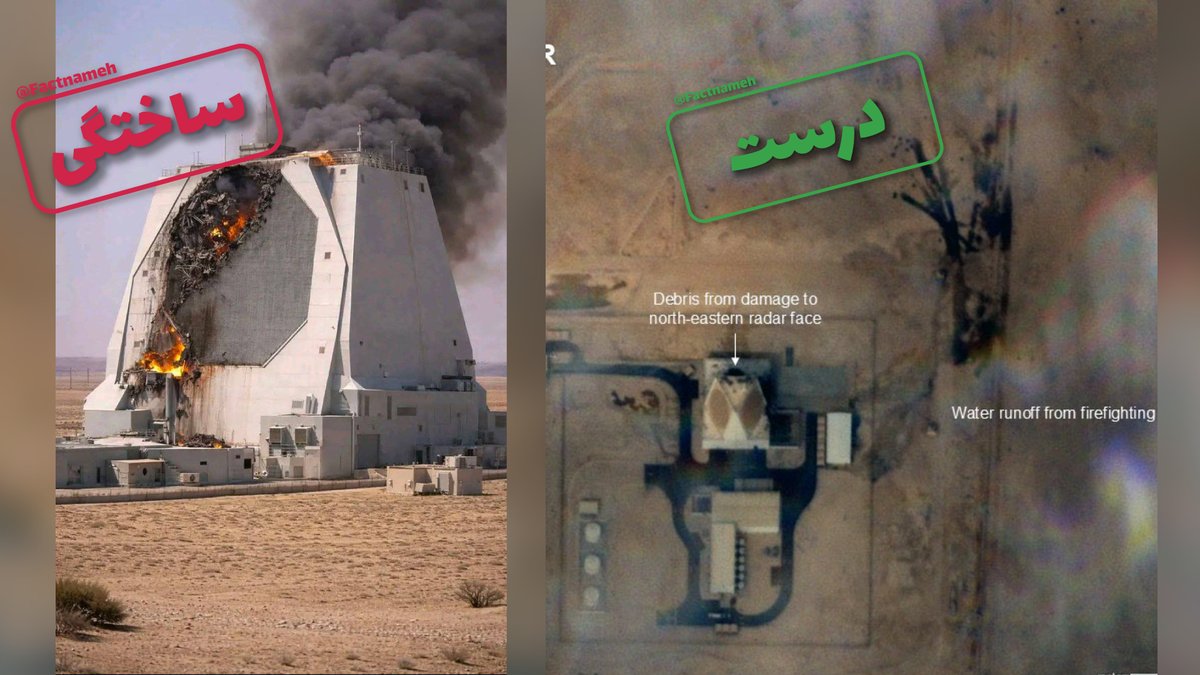 از این رو این ادعا که ایران به این رادار حمله کرده و خساراتی وارد کرد درست است اما عکسی که منتشر شده و در میان هوادارن حکومت دست به دست میشود ساخته هوش مصنوعی و «نادرست» است.
