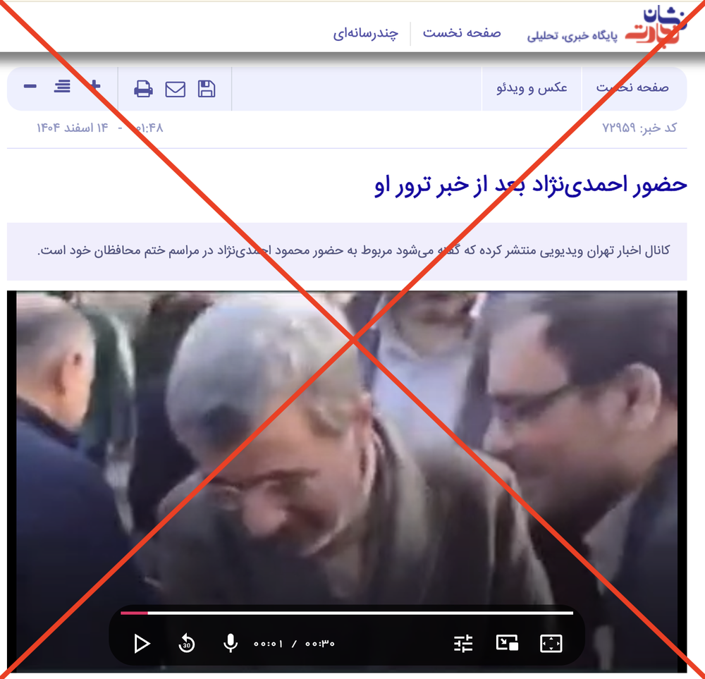 از این رو فکتنامه به ویدیویی که ادعا میشود محمود احمدینژاد را در مراسم تدفین محافظانش نشان میدهد، نشان «نادرست» میدهد.