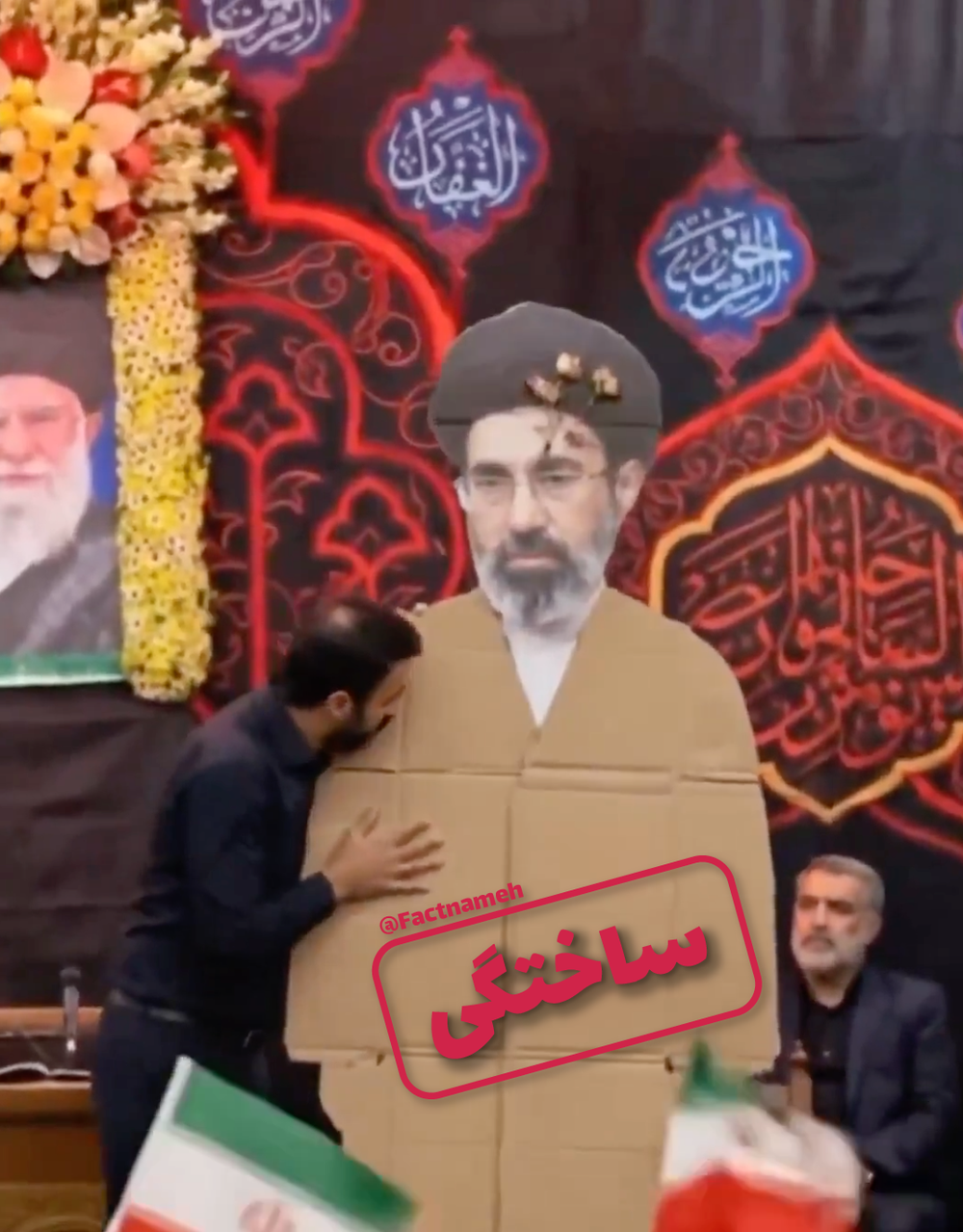 فکتنامه به ادعای واقعیبودن ویدیویی که در آن ماکت مقوایی مجتبی خامنهای دیده میشود نشان «نادرست» میدهد.