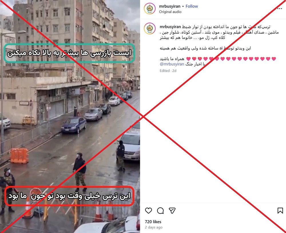 ویدیویی در شبکههای اجتماعی منتشر شده که ادعا میکند مربوط به وحشت ماموران در یک ایست و بازرسی از حمله پهپادی است. (لینک۱ ، لینک۲ ، لینک۳ ، لینک۴ ، لینک۵)