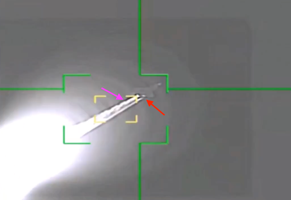 در ثانیههای پایانی، یک جسم بسیار روشن از سمت راست به هدف نزدیک میشود و سپس تصویر با نور شدید اشباع میشود. همین لحظه مبنای ادعای «رهگیری» قرار گرفته است. اما از نظر فنی، اشباع نوری به تنهایی معادل اصابت موفق نیست. چنین فلاش شدیدی میتواند ناشی از نزدیک شدن منبع حرارتی، bloom سنسور، محدودیت حسگر در ثبت صحنهای بسیار پرنور، یا یک رخداد پرانرژی نزدیک به هدف باشد. آنچه در فایل دیده نمیشود، نشانههای کلاسیک یک انهدام قطعی است: فروپاشی روشن بدنه، قطع کامل ترک، یا حذف ناگهانی هدف از صحنه.