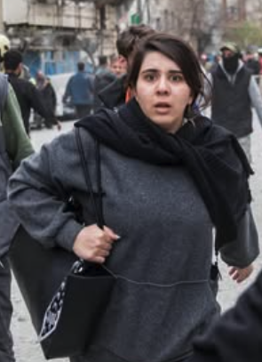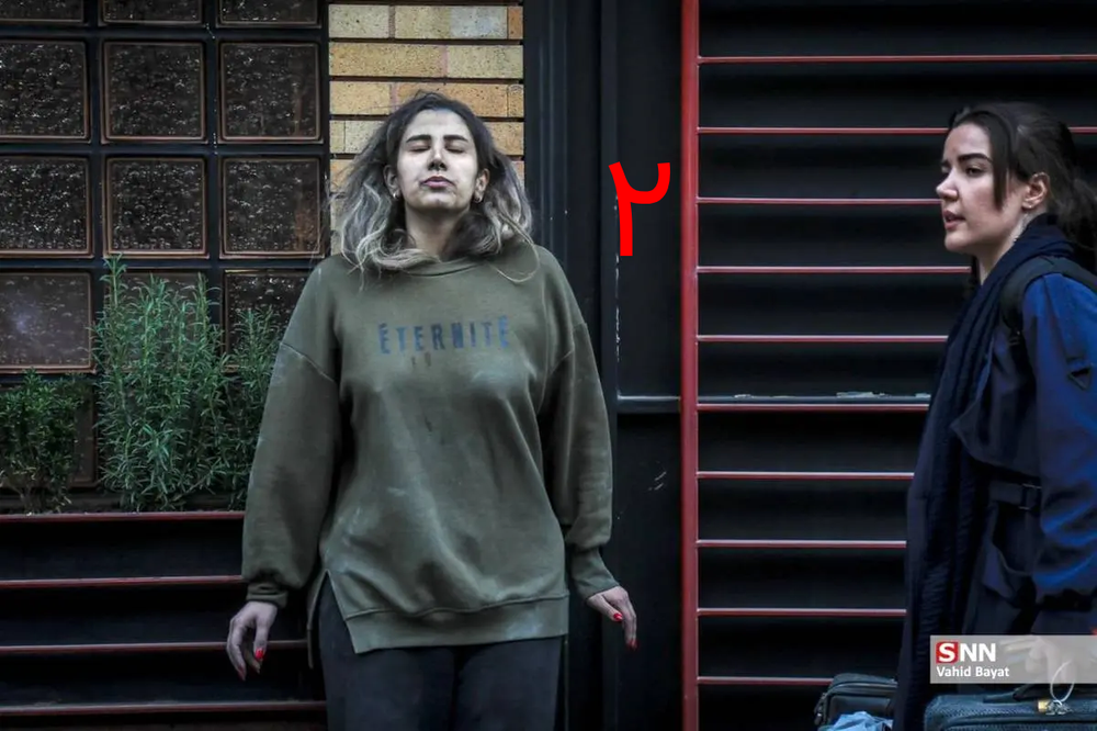 زن و مردی که در عکس شماره ۱ در ساختمان دیده میشوند، در عکسهای وحید حسینی در همان خیابان دیده میشوند. زن در این عکسها، کاپشن به تن دارد.