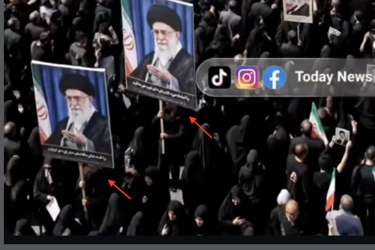 علاوه بر این در ویدیوی منتشر شده به عنوان تشییع علی خامنهای در تهران، نشانههای تصویری وجود دارد که نشان میدهد این بخشها ساخته هوش مصنوعی است.