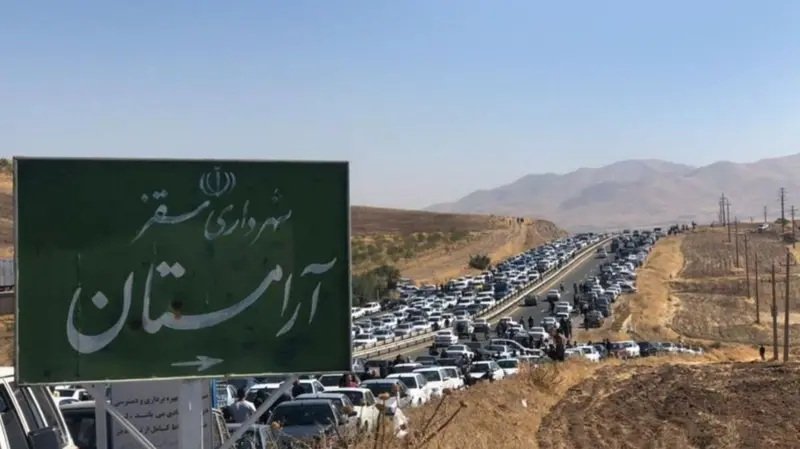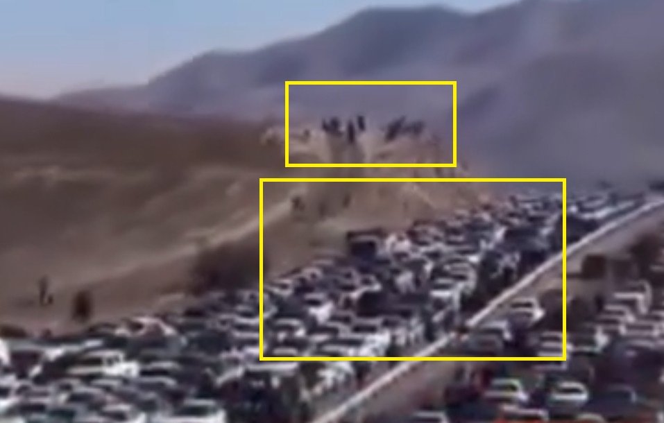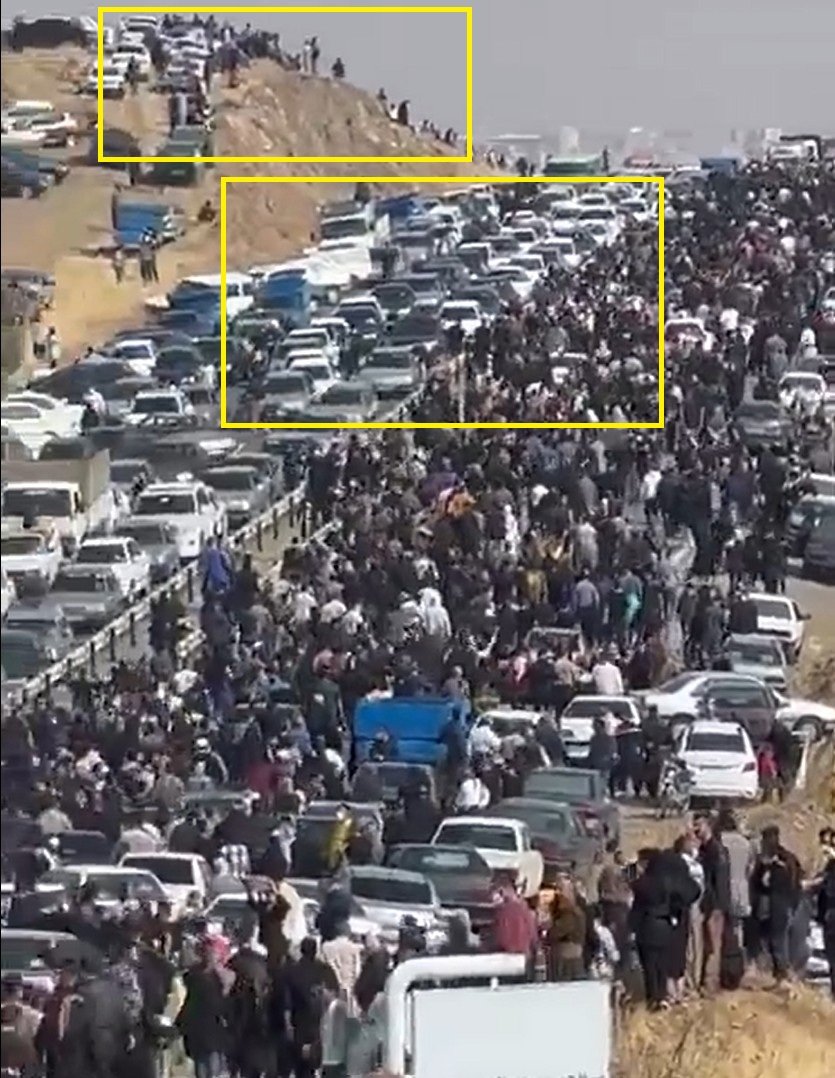 تصویر بالا مربوط به چهلم ژینا امینی که در آن شیب جاده، ترافیک خط سمت چپ و تپه سمت چپ با ویدیوی قدیمی در این ادعا مطابقت دارد.