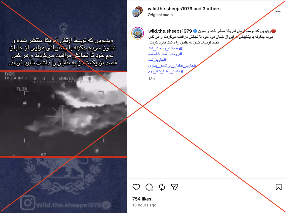 در توضیح این ویدیو متنهایی مثل «ویدیویی که توسط ارتش آمریکا منتشر شده و نشون میده چگونه با پشتیبانی هوایی از خلبان دوم خود تا نجاتش مراقبت میکردند و هر کس قصد نزدیک شدن به خلبان را داشت نابود کردند.» یا «فیلم نجات خلبان آمریکایی، زدند تمام سپاهیها و بسیجیهای رو پودر کردند. فکر کردید با مردم بیدفاع و بیسلاح ایران طرفید.» و «ویدیوی نجات خلبان آمریکایی که پنتاگون پخش کرده» نوشته شده است.