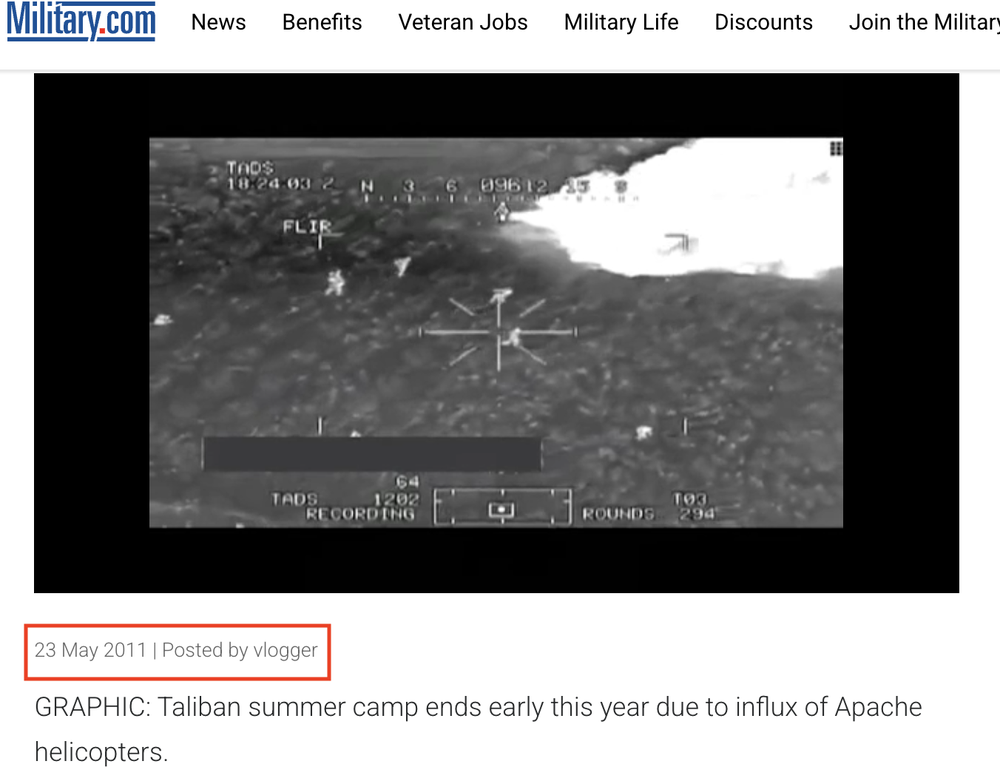 این ویدیو در ماه می سال ۲۰۱۱ (اردیبهشت ۱۳۹۰) در وبسایت military که اخبار مرتبط با ارتش آمریکا را منتشر میکند، بارگذاری شده بود.