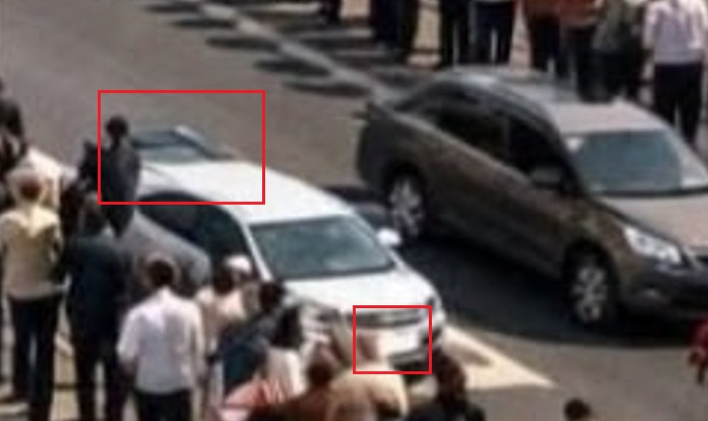 پلاک یکی از خودروها روی پل، و صندوق عقب آن، عادی نیست.