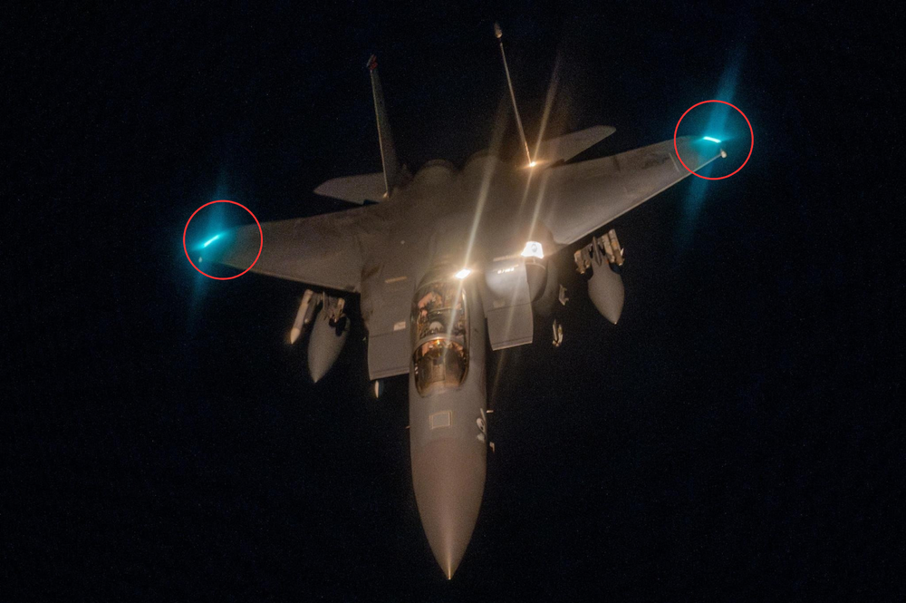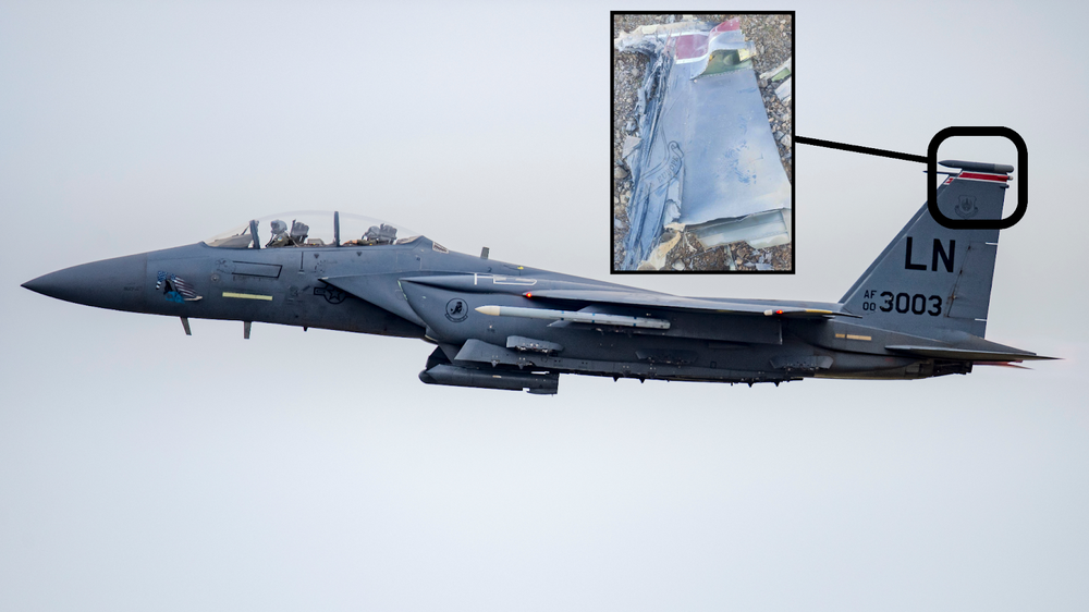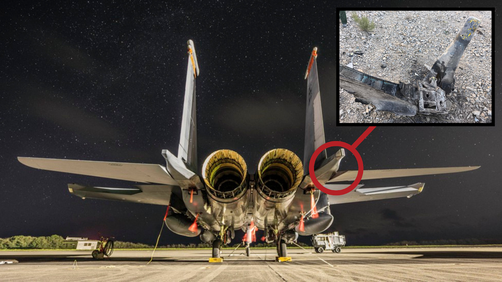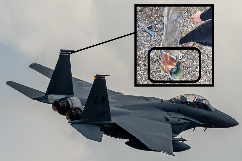 ۴. در یکی دیگر از تصاویر، بخش انتهایی بدنه جنگنده F-15E استرایک ایگل (نقطه اتصال سکان عمودی/افقی به بدنه) قابل تشخیص است.