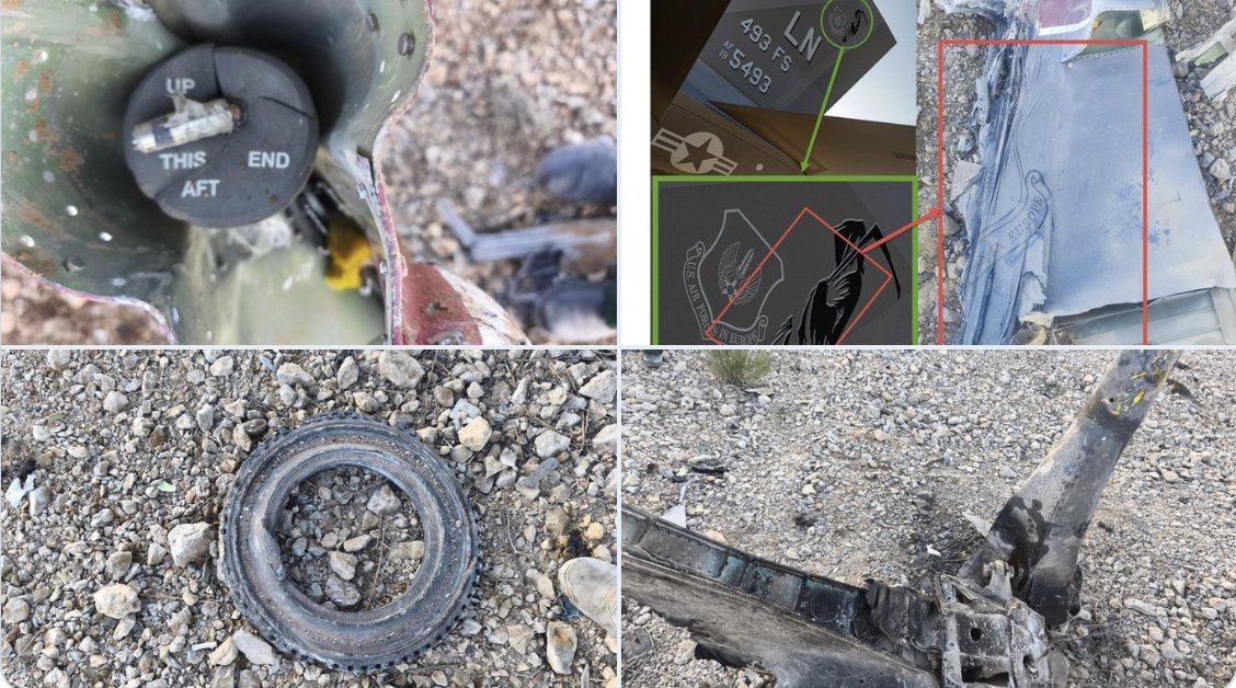 در یکی از تصاویر، مجموعه سیستم هشداردهنده جنگ الکترونیک AN/ALQ-128 بر روی سکان عمودی سمت چپ جنگنده قابل شناسایی است. نوار قرمز رنگ روی آن نشان میدهد جنگنده متعلق به اسکادران ۴۹۴ ملقب به Panthers، جمعی تیپ ۴۸ جنگنده نیروی هوایی آمریکاست که در پایگاه هوایی لِیکِنهیث (RAF Lakenheath) بریتانیا مستقر بوده و تعدادی از آنها به اردن منتقل شده بود.