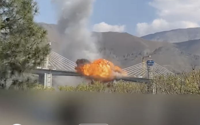 در ویدیوی دیگری که در شبکههای اجتماعی منتشر شده لحظه اصابت موشک دوم به پل قابل دیدن است. موشک دوم به ابتدای پل برخورد میکند و در فاصله کوتاهی از آن سازهای مشابه آنچه موشک اول با آن برخورد کرد دیده میشود.