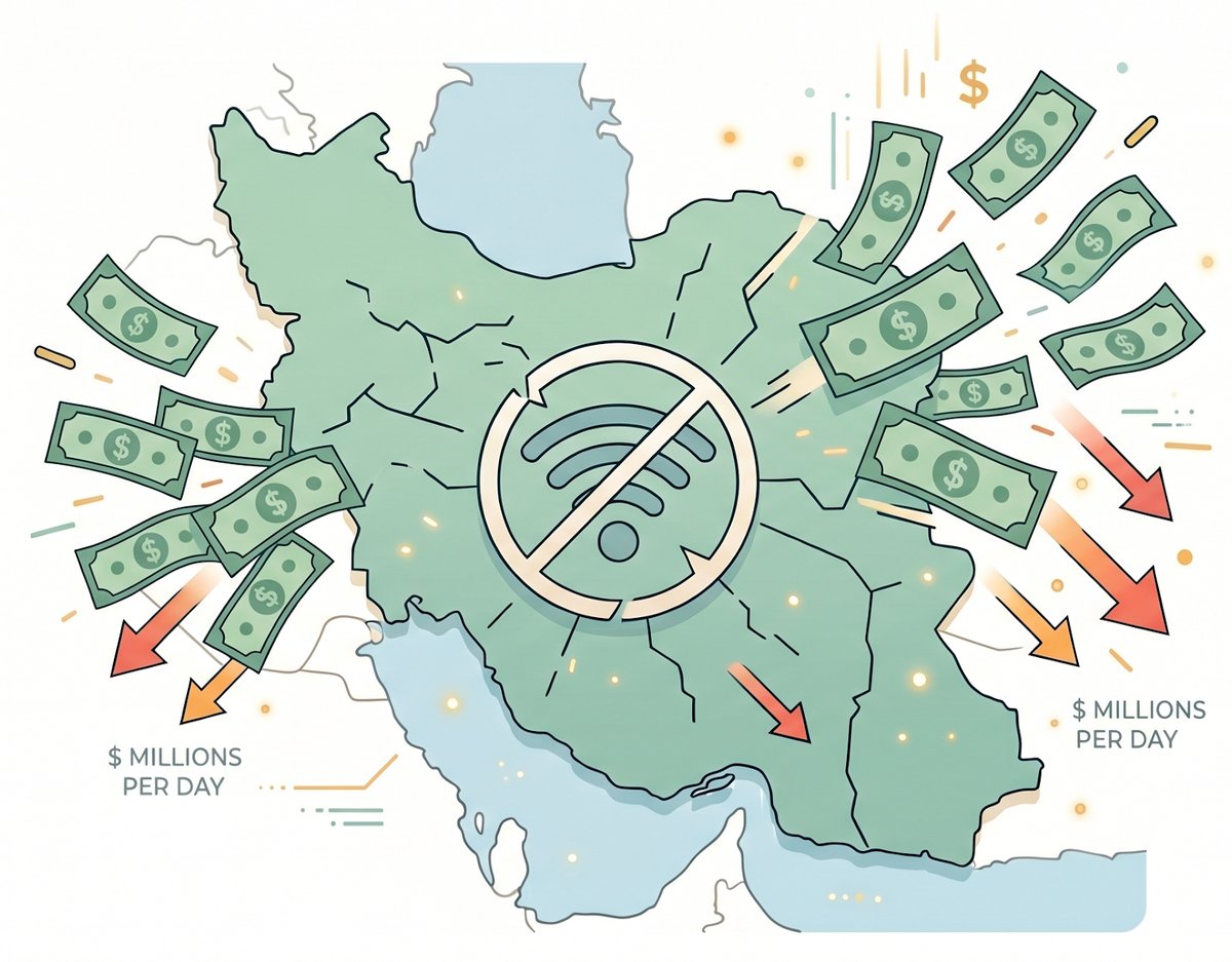 افشین کلاهی، رئیس کمیسیون دانشبنیان اتاق ایران میگوید: خسارت روزانه قطع اینترنت برای اقتصاد ایران، به صورت مستقیم ۳۰ تا ۴۰ میلیون دلار و با احتساب خسارتهای غیرمستقیم، روزانه ۷۰ تا ۸۰ میلیون دلار است و از این جهت خسارت قطع اینترنت که دولت ایران مسئول آن است، از خسارت آسیب نگ به زیرساختهایی مانند پل B1 یا نیروگاههای تولید برق بیشتر است.